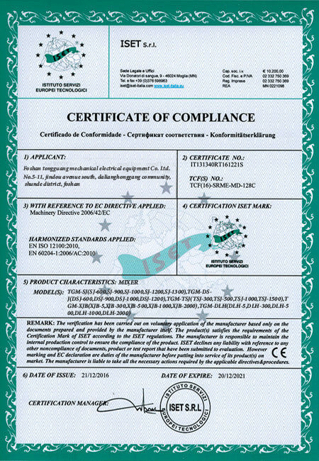 通广机械通过ISO9001质量管理体系认证,CE认证,重合同守信用等各项认证及荣誉。