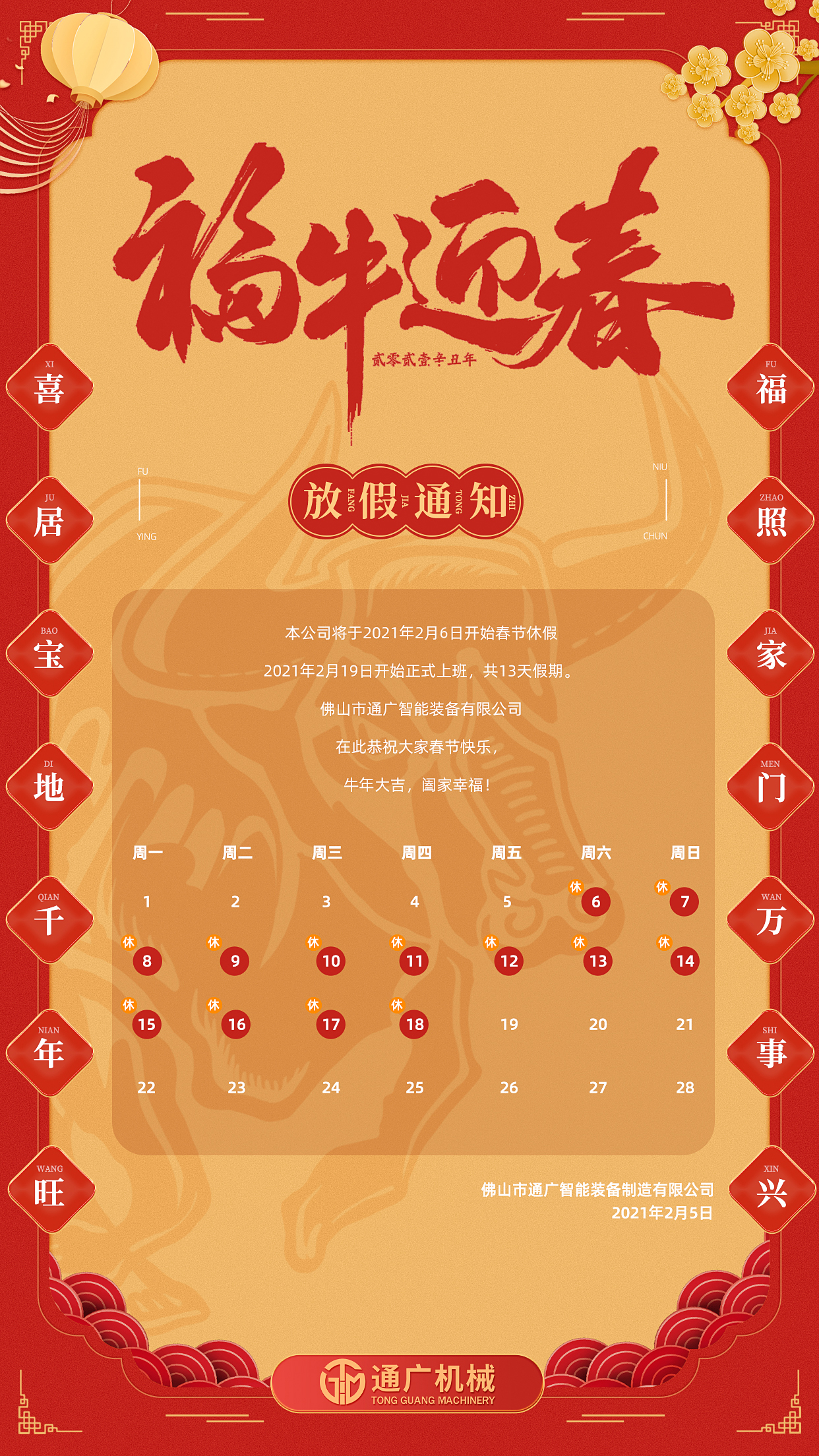 在此通广机械提前祝大家