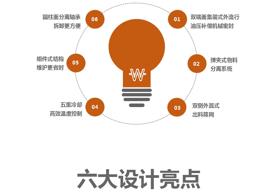 04 稳定性:原来设备靠出料端主轴上面安装的是一个拨珠轮,悬臂负载很大,轴的跳动量较大,现在都改为研磨盘,悬臂负载很小,对轴承、密封、主轴等使用寿命都有了很大的提高。