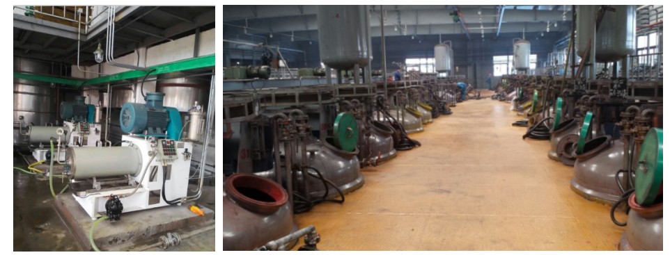第二招:占地 如上所述,一台100L卧式砂磨机的生产效率可等同于八台3000L砂磨锅的生产效率,可大大节约生产用地。 |